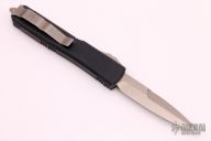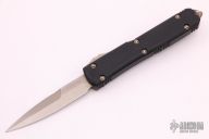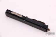 This Ultratech by Microtech features a stonewash bronzed double edged blade. The handle has a contoured black G-10 and black aluminum frame with bronzed stainless steel hardware. Comes with original box and papers. Has some scratches, has been carried, otherwise good condition. Dated 09/2018 and s/n 104023.