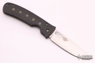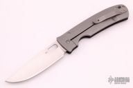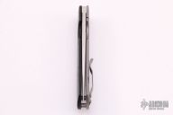 This Left Handed Covert 6K folder by Tom Mayo features a Stellite 6K blade with a hand rub satin finish and thumbhole opening. The handle has a marble carbon fiber and bead blast titanium frame with titanium tip up clip, all titanium hardware, has mosaic pins in carbon fiber side. This knife is completely non-magnetic. Smooth action. Nice detent, blade seating and lockup. Excellent condition.