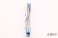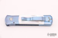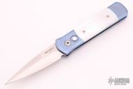 This Custom Titanium Godson by Pro-Tech features the quality and tremendous strength of aerospace grade titanium and a level of fit and finish rarely seen. Each of these pieces starts out as solid 6al4V titanium bar stock. The handles are precision machined then completely hand finished. More than six different steps of hand sanding and polishing are needed to bring the titanium to a mirror polish. Inlays are fit to be seamless with the frame. This Custom Titanium Godson features a satin finished blade and mother of pearl inlays. Matching inlay in push button. Excellent condition. Comes with a Pro-Tech box and papers.
