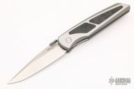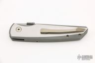 This Harkins ATAC D/A Auto by Pro-Tech Knives was designed by Jeff Harkins. The auto fire feature is achieved by depressing the lower corner of the first (closest to front of the handle) marble carbon fiber inlays. Manual opening is equally effective, and with dual thumbstuds can be accomplished with either hand. Closes via the linerlock. Has a two-tone stainless steel handle, marble carbon fiber inlays and a stonewashed blade. Has a bronzed tip up orange peel finished titanium clip with hidden screws. Comes with Pro-Tech box and papers. Excellent Condition.