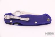 This Paramilitary 2 from Spyderco has a satin finished clip point blade with thumbhole and notched thumb rest. Handle is blue G10 with stainless steel liners and stainless steel 4-way reversible clip. Comes with original box and paperwork.  Excellent Condition.