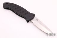 This Combat Auto by Woodard Knives has a hand rub satin finished blade. Handle is black aluminum with milled contours and lanyard hole, has black linen micarta backspacer. Excellent condition. Comes with nylon sheath.