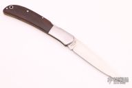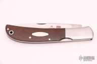 This Eagle 1005 Folder by Al Mar features a satin finished blade with nail nick. The handle has stainless steel bolsters, wood scales with a nickel silver escutcheon, brass liners and stainless steel backspacer. Comes with original brown leather sheath, and an Al Mar box marked "Eagle" but part of the label is cut off. Has a few light scratches, otherwise excellent condition.