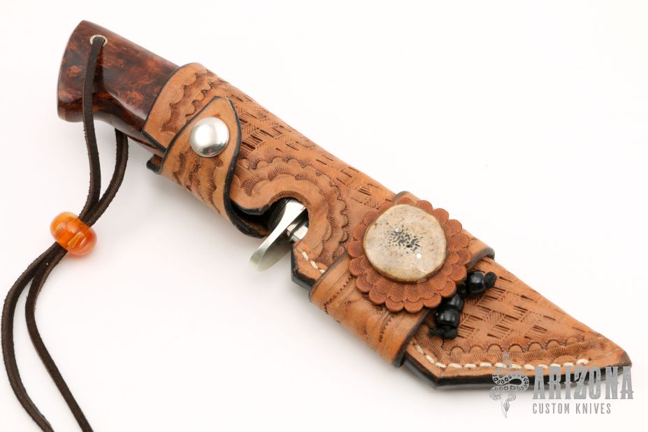 D'Alton Holder was born in Heald, Texas in 1940, was raised in Amarillo and graduated from West Texas State University with degrees in Fine Arts and English Literature. He retired early after 25 years with Diamond Shamrock Corp to become a full time knifemaker in 1988. He began making knives in 1968, joined the Knifemakers Guild in 1973 and was elected to the board in 1976, secretary/treasurer in 1978, President 1982, he served as Vice President 1984. Re-elected to board in 1988 and was elected President again in 1996. Received the Red Watson award in 1982. Named to the NSSF Hall of Fame in 1983. D'Alton is an avid horseman, hunter and fisherman. He prefers to work with natural handle materials and ATS-34. D'Alton has taught over 75 knifemakers, including people like Jim Hardenbrook and Bill Cheatham. Many of his knives are engraved by his wife, Pat Holder. Inducted into the Blade Magazine Cutlery Hall of Fame in 2003. D'Alton passed away in 2022.
