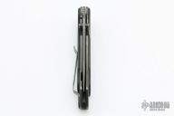 This Akribis linerlock folder by Spartan Blades features a Meteorite Gray PVD finished drop point S35VN blade with dual thumb studs and a notched thumb rest. The handle has carbon fiber scales, black PVD titanium liners, black G-10 backspacer and tip up black pvd titanium clip. Has nice detent, lockup, and blade seating. Comes with original box. Excellent condition.