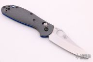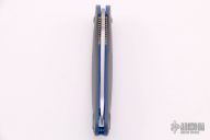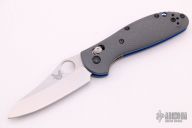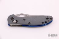 Benchmade's classic Mini Griptilian knife just got even better with G-10 handles, blue barrel spacers, and a premium CPM-20CV steel blade with exceptional edge retention! The Mini Griptilian is a Pardue designed folding knife that utilizes the AXIS lock mechanism, which makes the knife easy to open and close for right and left hand users. The deep carry pocket clip can be reversed, making the Griptilian folder an equally amazing knife for right or left handed users. The 555-1 has a stonewashed sheepsfoot blade with a plain cutting edge and a thumb hole opener. Excellent condition. Does not come with a clip, but is set up for a 3-hole clip.