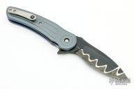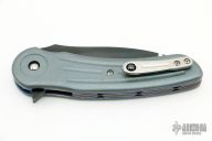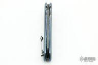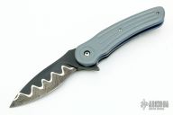 This knife by Cory Martin features a San Mai Damascus blade with Damascus core, and a flipper. The handle has milled, bead blasted and anodized titanium scales, satin finished titanium tip up clip with ceramic ball, anodized titanium liners, San Mai Damascus backspacer. Nice detent, lockup and blade seating, rides on bearings. Comes with a zippered case. Has a few light scratches, otherwise excellent condition.