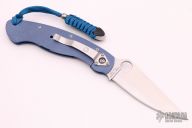 The Military folder from Spyderco has been in production since the 1990s in a variety of steels, materials and colors. This framelock Military folder has a satin finish S30V blade and a fluted and anodized titanium frame. Blade choil and thumbrest are jimped for better control. The oversized blade hole makes opening a natural and smooth action even if wearing gloves. Tip down carry. Excellent condition. Comes with original box and papers.