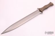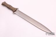 This FMV14 by Busse Custom Shop features a satin finished double edged blade with milled bevels, .235" blade stock and 1.710" blade depth, full tang construction with green/brown linen micarta scales. Excellent condition, no signs of use or carry.
