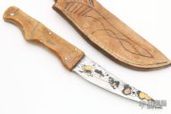 Along the way I realized I now had the tools to build my own knife blades. I work with steel, but work it hard and slow so do not do tempering. I still often buy good blades from a blade maker, and think I prefer the stories told in the handle materials best. I do my own acid etched scenes in the steel. I?m now maybe one of the experts on raw material, doing identifications for museums, restorations , appraisals, as well as doing my own art and supplying others. I have 9 buildings full of raw materials now. ?Truckloads? I have customers from all over the world come find me in Nenana Alaska on a pilgrimage to look over my materials, who are not disappointed. So I have lots to choose from when building a knife. I stopped counting my custom one of a kind art pieces at 10,00 items over 10 years ago. I?m a full time artist.
