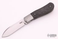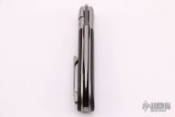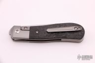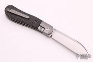 This Dogleg Front Flipper by Enrique Pena features a satin finished blade with a front flipper and notched thumbrest. The handle has titanium bolsters, marbled carbon fiber scales with a titanium backspacer and matching tip up pocket clip. Includes a Pena X-Series padded box. New from Maker.