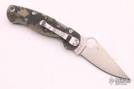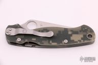 This Paramilitary 2 Linerlock Folder has a satin finished blade with thumb hole and notched thumbrest. Handle is digi camo G10 with stainless steel liners and black stainless steel 4-way reversible clip. Excellent condition. Blade steel is S45VN.  Comes with original box and paperwork.