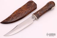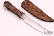Jay started making knives in 1974, while working at IBM. Jay became a full time knifemaker in 1987 and received his ABS Master’s Certification in 1989. Jay was one of the ABS members instrumental in the planning and formulation of the W. F. Moran School of Bladesmithing in Washington, Arkansas and the Bladesmith Museum in Little Rock, Arkansas. He has been teaching the basic bladesmithing course at the school since its beginning. Prior to this, Jay taught ABS classes at the Rochester Institute of Technology in Rochester, NY for five years. Jay makes all styles of straight knives. He makes his own Damascus, does all of the handle treatments, and creates and hand sews his own sheaths. In 1995, Jay was presented with the ABS’s highest honor, the Don Hastings Award. The annual honor goes to an individual “who has performed outstanding service on behalf of the forged blade in the tradition of Don Hastings,” one of the founders of the ABS. In 2004, Jay won the William Scagel Award, presented by the ABS to a bladesmith “for longtime service to promote the forged blade.” Jay was voted into the ABS Bladesmithing Hall Of Fame in 2006. Inducted into the Blade Magazine Cutlery Hall of Fame in 2021.
