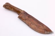 Along the way I realized I now had the tools to build my own knife blades. I work with steel, but work it hard and slow so do not do tempering. I still often buy good blades from a blade maker, and think I prefer the stories told in the handle materials best. I do my own acid etched scenes in the steel. I?m now maybe one of the experts on raw material, doing identifications for museums, restorations , appraisals, as well as doing my own art and supplying others. I have 9 buildings full of raw materials now. ?Truckloads? I have customers from all over the world come find me in Nenana Alaska on a pilgrimage to look over my materials, who are not disappointed. So I have lots to choose from when building a knife. I stopped counting my custom one of a kind art pieces at 10,00 items over 10 years ago. I?m a full time artist.