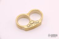 Two finger brass knuckles. Comfortable feel in hand. Has scratches, otherwise good condition.
