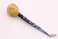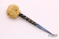 This Alien Head Spike by Hugh Bartrug features a twisted hand forged spike with a carved ivory paper micarta alien head handle. Excellent condition.