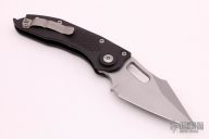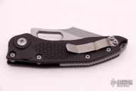 This Stitch Auto by Microtech Knives features a stonewash finished blade and false top edge, notched thumb and finger rests. The handle has a black anodized and milled aluminum handle with a bead blasted titanium backspacer and a bead blasted stainless steel clip, tip up carry, lanyard hole at the butt. Comes with original box and papers. S/N of 6497 and dated 04/2021. Excellent condition.