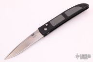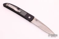 The 3000s automatic from Benchmade is a discontinued model designed by Mel Pardue. Side opening, coil spring. Satin finish partially serrated blade. Stainless steel clip. Scuffs/scratches are visible on the blade and frame otherwise the knife is in good condition.