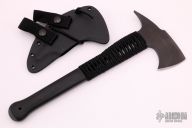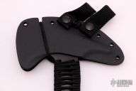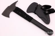 A combination tool developed for Military and Law Enforcement use, the WK Combat Axe is made for breaching and combat applications. The user has easy access with a fast draw carrier. An integral glass breaker extends beyond the end of the handle. The WK Hammer Combat Axe is basically the same axe as the WK Combat Axe, but with a hammer pole rather than a spike. It is a great woodcraft or field axe or performs well as a breaching axe when hammering is part of the operation. A partial cord wrapped upper handle option is available. If the handle is damaged under the head, a new cord can readily be installed. The cord is also an excellent emergency resource. Axe Specifications Axe steel: 80CrV2 Black oxide no-glare finish Head length: 5 7/8" Overall length: 13 3/4" Blade thickness: 3/8" Skeletonized full tapered tang Integral Glass Breaker Partial cord wrap optional Sheath Fast draw carrier Lined Kydex® HD shockcord quick-release retention system Nylon belt straps with Mil-Spec Pull-The-Dot™ snaps Designed for multiple carry options (See our Info page for carry options) Comes with original packaging. New from maker.