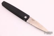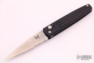 This Spike automatic by Benchmade Knives features a satin finished partially serrated blade and black anodized aluminum frame. Scratches are visible on the frame otherwise the knife is in excellent condition.