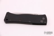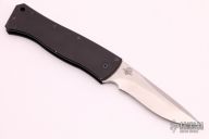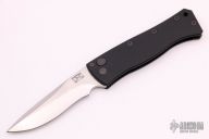 This Side Opening Automatic is a collaborative effort between Walter Brend and Woodard Knives. It features a satin finished, recurve drop point blade with swedge. The handle has a black aluminum frame over a green micarta backspacer with lanyard hole in pommel. Scuffs/Scratches are on blade and handle otherwise the knife is in good condition.