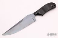 This PPF from Fred Perrin features a blued clip point blade with visible temper line, swedge and notched thumbrest, .155" blade stock and 1.594" blade depth, full tang construction. The handle is comprised of black paper micarta with nickel silver pins. Lanyard hole with lanyard in pommel. Comes with a zippered case. Has some light scratches, otherwise excellent condition.