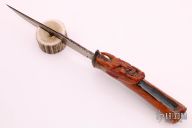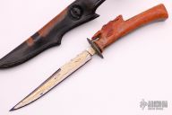 "My name is Peter Martin and I have been making knives for over 20 years and I'm a voting member of the Knifemaker's Guild. Sold my first knife in 1988, started hand forging steel in 1989, and my own Damascus in 1992. I believe in sole authorship and I stand behind my knives 100%.All of my knives are handmade 1 at a time. Forge welding the damascus billets, patterning and shaping the blades is performed solely by myself to ensure the finest quality control. I've spent a lot of time and resources researching and testing for proper heat treatment of my blades and I can guarantee that they are heat treated to perform to the best of their abilities for which they were intended. I select only the best natural handle materials available at the time. I have no "get by" factor. It's either the very best or it's not used. My knives, are just that, made by me down to the smallest detail. On occasion I will allow other qualified artists to perform engraving or scrimshaw work on my knives."