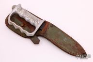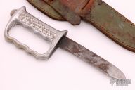 A WWII specimen of an Australian or New Zealand made commando aluminum handle fighting knuckle knife & Original Leather Sheath. A hard to find rare WWII knife.