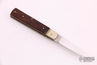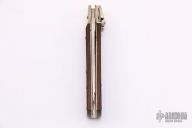 This leverlock auto by Hubertus features a spear point blade, nickel silver bolsters, wood scales, and brass liners and pins. Some scratches are visible on the blade otherwise the knife is in excellent Condition.