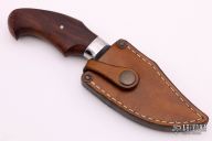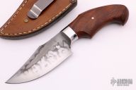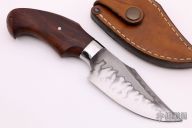 This Integral Hunter by Jan Hafinec is beautiful. It features a clip point blade (C105 Carbon Steel) with amazing hamon, sharpened top edge and integral bolsters, .162" blade stock and 1.465" blade depth, hidden tang construction. The handle has a textured ironwood grip, steel pin. Comes with a nice brown leather sheath. Excellent condition.