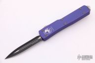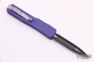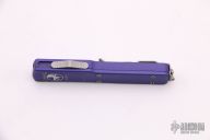 This UTX-70 OTF automatic features a D/E black finish blade with a standard edge. Stainless steel clip. Purple aluminum frame. S/N 25684. Dated 04/2015. Comes with original box and papers. Excellent Condition.