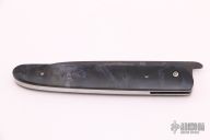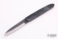 The Bitchu-no-Kami is a traditional Japanese-style folder. The blade is Stainless clad Aogami Super Steel (NAS) which is a high-carbon steel alloy with vanadium and is ground on both sides. Handle constructed of dyed maple burl scales with polished stainless steel liners and backspacer. Comes with brown leather pouch. New from maker.