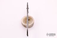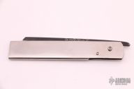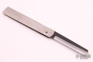 The Bitchu-no-Kami is a traditional Japanese-style folder. The blade is Stainless clad Aogami Super Steel (NAS) which is a high-carbon steel alloy with vanadium and is ground on both sides. Handle constructed of nickel silver. Comes with leather pouch. New from maker.