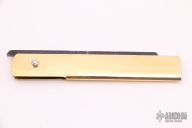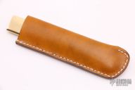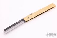 The Bitchu-no-Kami is a traditional Japanese-style folder. The blade is Stainless clad Aogami Super Steel (NAS) which is a high-carbon steel alloy with vanadium and is ground on both sides. Handle constructed of brass. Comes with leather pouch. New from maker.