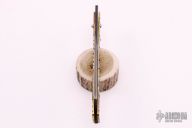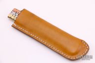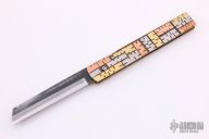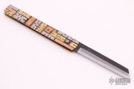 The Bitchu-no-Kami is a traditional Japanese-style folder. The blade is Stainless clad Aogami Super Steel (NAS) which is a high-carbon steel alloy with vanadium and is ground on both sides. Handle constructed of nickel silver with brass/copper/nickel silver overlays. Comes with leather pouch. New from maker.