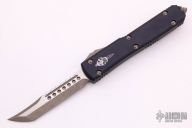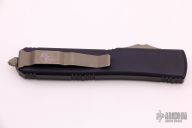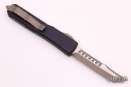 This Ultratech by Microtech Knives features a bronzed stonewashed Hellhound blade with satin flats and false top edge. The handle has a black aluminum frame with tip down bronzed stainless steel clip and hardware. Comes with original box and papers. 02/2017.  S/N 650.  Excellent condition.