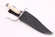 I prefer using Damascus steel because of the wide variety of beautiful patterns available. I like using natural materials for handles such as fossil Walrus, Mammoth ivory, and Mammoth teeth."