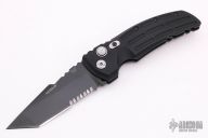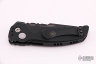 This EX-A01 by Hogue Knives is an Allen Elishewitz design, it features a black tanto partially serrated 154CM blade with notched thumbrest. The handle is black aluminum, tip up or down reversible black stainless steel clip. Has safety. Comes with Hogue box and papers. Excellent condition.
