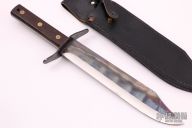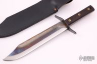 This Bowie by Svord features a clip point blade, .271" blade stock and 1.962" blade depth, full tang construction. The handle has a steel guard and wood scales. Comes with a black leather sheath. Has some light scratches, otherwise excellent condition.