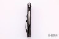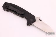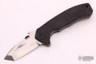 This Custom CQC-14 Stubby Tanto Prototype by Ernie Emerson has a chisel ground tanto blade with thumbdisc and wave feature. The handle has black G-10 scales, titanium liners, black stainless steel tip up clip. Comes with original box and paperwork. Excellent condition.