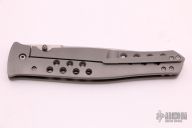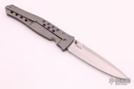 This Mega Dr. Death by Tom Mayo features a hand rubbed satin finish blade with false top edge and thumbhole. The handle has a bead blasted titanium frame with titanium tip up clip, titanium standoffs. Nice detent, lockup and blade seating. Excellent condition. Comes with a velcro case.