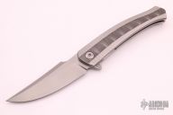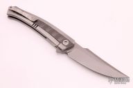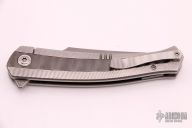 This Persian by Richard Rogers features a bead blasted blade with notched flipper. The handle has a checker milled titanium frame, Long Wave milled zirconium inlays, floating zirconium backspacer, tip up titanium clip. Nice detent, lockup and blade seating, rides on bearings. Comes with velcro case and COA dated August 2021. New from maker at 2021 USN Gathering.