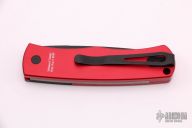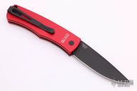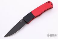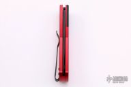 This BR-1.7 Whiskers Design by Protech Knives features a black 154CM blade, false top edge. The handle has a red aluminum frame with a black aluminum bolster release, stainless backspacer and tip up black stainless clip. Lanyard hole at the butt. Comes with original box and papers. PR3 #256. Excellent condition.
