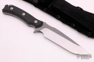 This Repercussion by Ramon Chaves features a satin finished blade with .246" blade stock and 1.579" blade depth, full tang construction with black canvas micarta scales. Comes with a black nylon sheath. New from maker at the 2021 USN Gathering. Comes with a zippered case and COA #34.