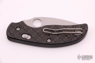 This C123CFP by Spyderco Knives features a satin finished blade with thumbhole. Carbon fiber pattern G-10 scales, stainless steel liners and tip up (right or left reversible) black stainless steel clip. Includes the original box and papers.  Excellent condition.