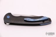 This Yamhill Linerlock Folder by Eric Ochs of Ochs Worx features a hand rub satin finished blade with flipper. The handle has carbon fiber scales, anodized and orange peel finished titanium liner, Damtanium backspacer and tip up clip with hidden screws. Includes zippered case and COA dated 8-30-21. Nice detent, lockup and blade seating. New from maker at the 2021 USN Gathering.