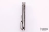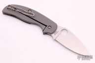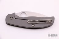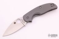 This C123TIP Sage 2 by Spyderco features a satin finished blade with thumbhole, notched thumb rest and choil. The handle has a bead blasted titanium frame over barrel spacers. Steel wire tip up clip is reversible for left or right hand carry. Great blade seating and lock up. Includes the original box and papers.  Excellent condition.