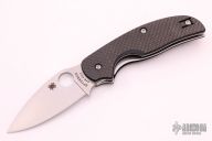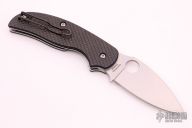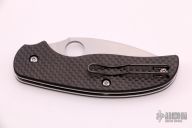 This C123CFP by Spyderco Knives features a satin finished blade with thumbhole. Carbon fiber pattern G-10 scales, stainless steel liners and tip up (right or left reversible) black stainless steel clip. Excellent condition. Comes with original box and papers.