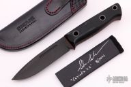 This Cascadia V.2 by Shane Sibert features a black blade with fullers, .158" blade stock and 1.138" blade depth, full tang construction. The handle has black G-10 scales with red G-10 liners. Comes with a black leather sheath, zippered case and COA dated 8/2021. New from maker at the 2021 USN Gathering.