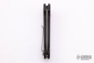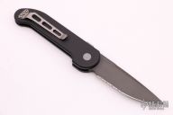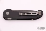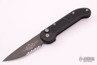 This UMS side opening coil spring automatic by Microtech features a partially serrated black blade and black aluminum handle with non-slip inlays and a tip up stainless steel clip. Sliding safety. Dated 04/2003 and #0701. Includes original sheath, tube and papers. Excellent condition.